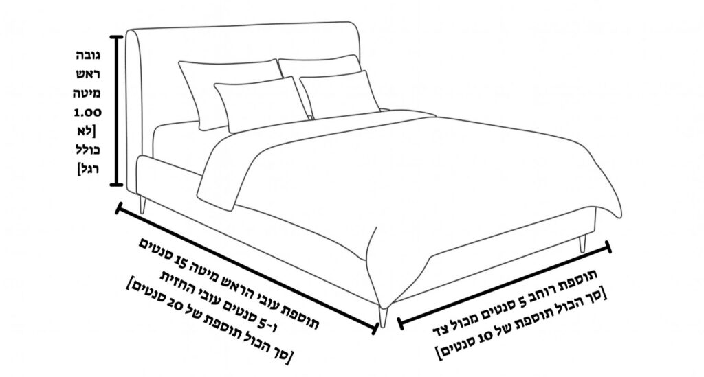 גובה ראש מיטה: 1.00 מטר (לא כולל רגליים)