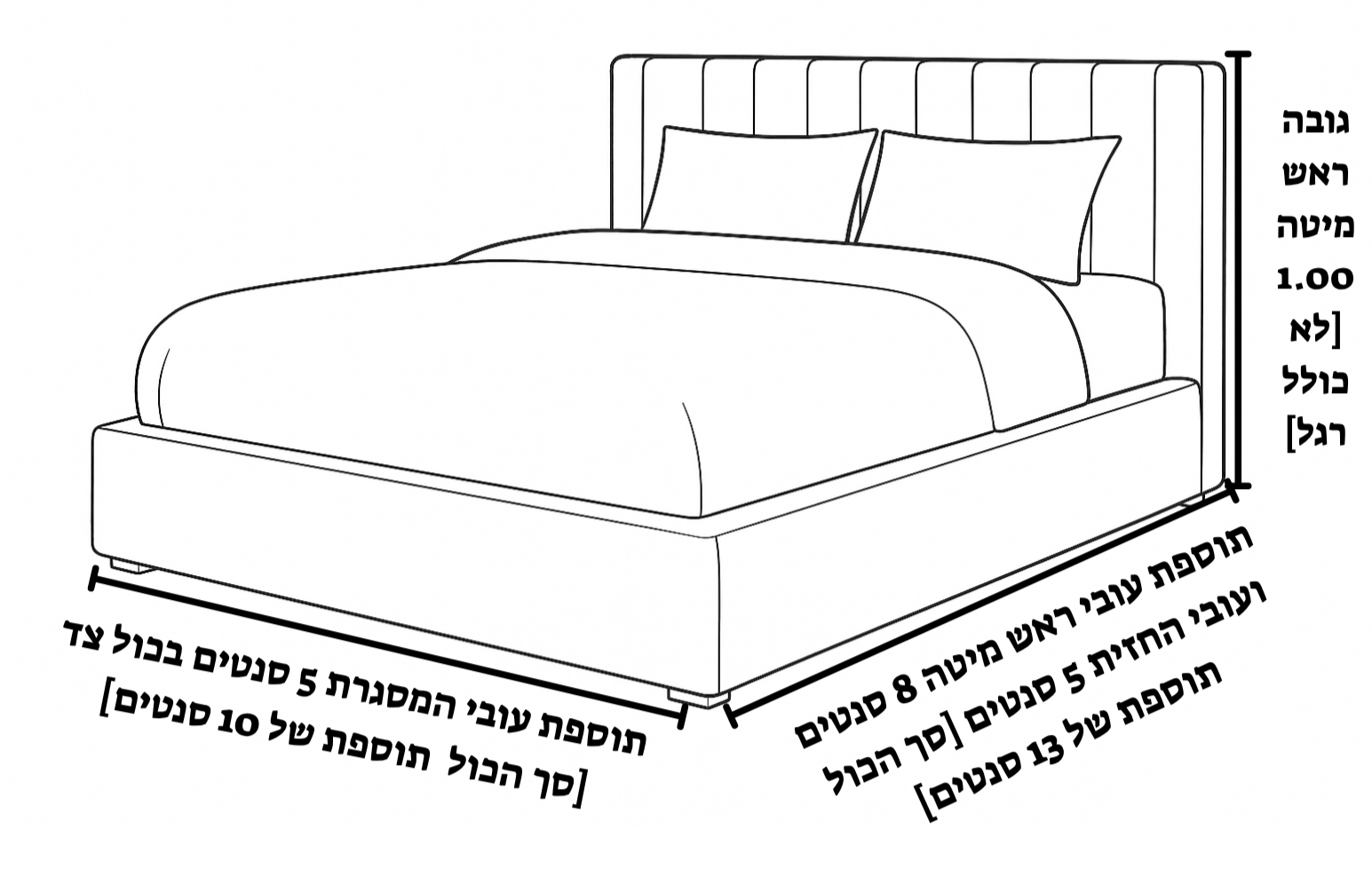 • גובה ראש מיטה: 1.00 (לא כולל רגליים)