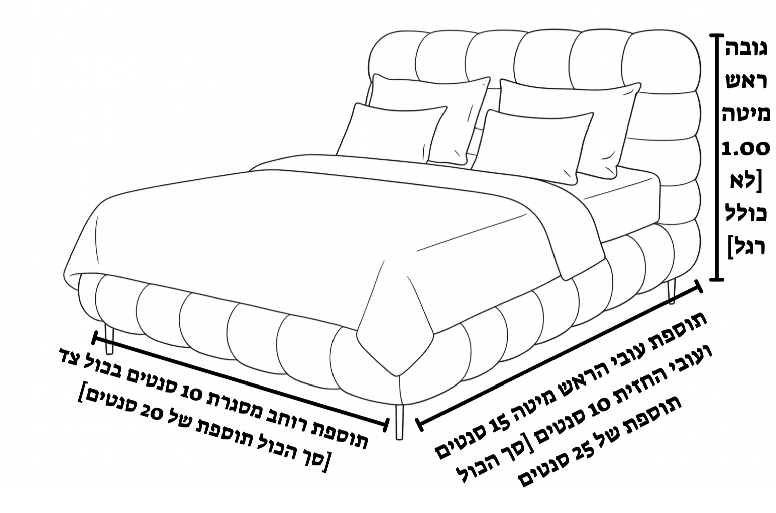 • גובה ראש מיטה: 1.00 (לא כולל רגליים)
