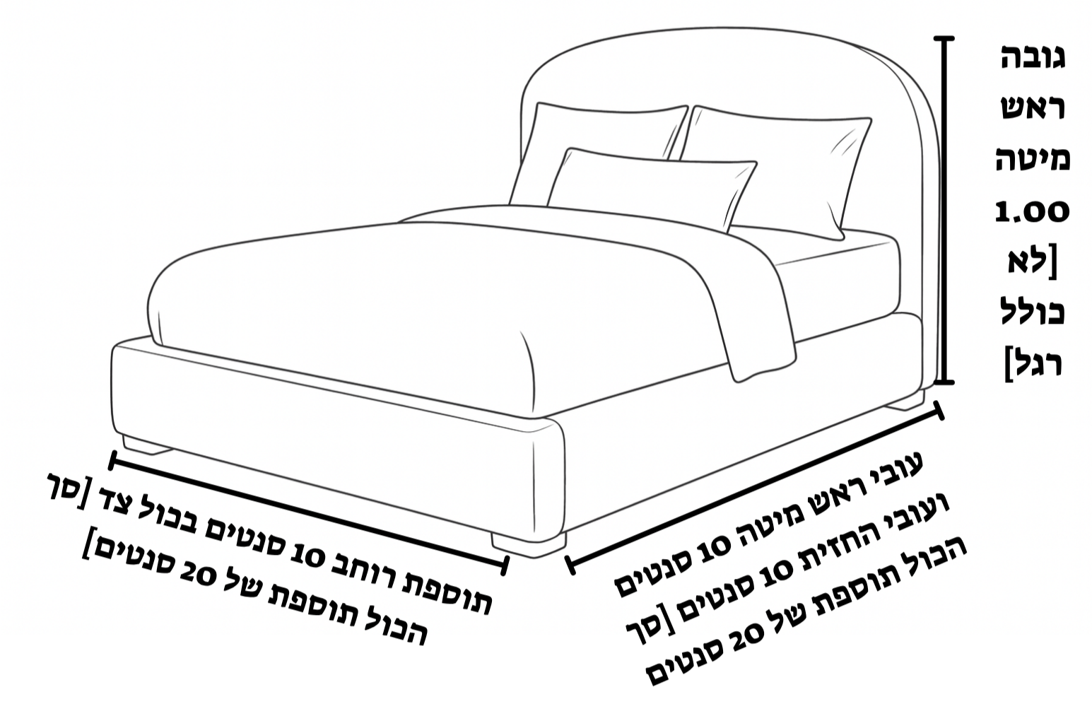 • גובה ראש מיטה: 1.00 (לא כולל רגליים)